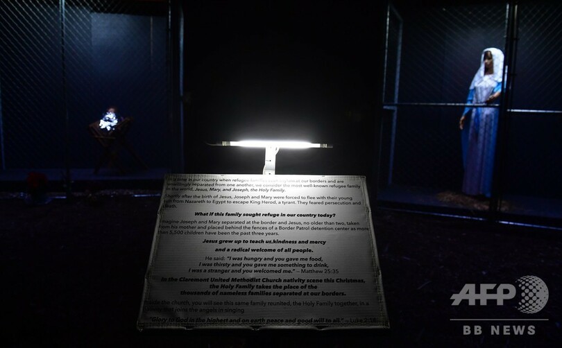 「想像してみてほしい。ヨセフとマリアは国境で離れ離れにされ、2歳にもならないイエスも母親から引き離されて、国境警備隊の収容施設のおりの中に入れられるだろう。これまで3年間に5500人以上の子どもたちがされたように」 (c)AFP