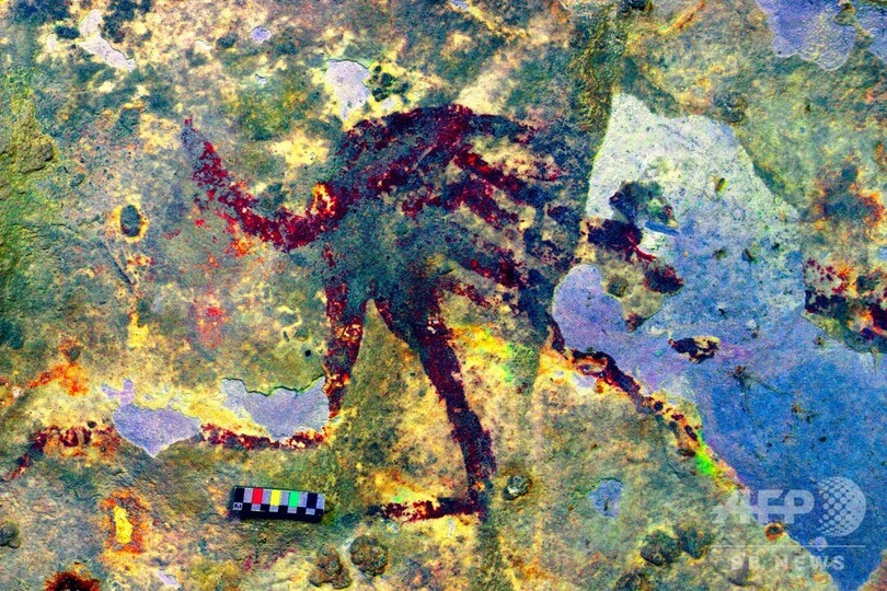 【12月12日 AFP】先史時代の狩猟の場面を描いたインドネシアの洞窟壁画が、4万4000年近く前に描かれたことが分かったとする新研究が11日、英科学誌ネイチャー(Nature)に発表された。世界最古の具象画である可能性があり、高度な芸術文化が存在していたことを示す発見だという。