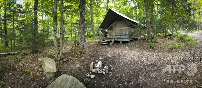 【12月21日 AFP】カナダ南東部に広がる森林のうっそうとした木々の下に設置された80張りのテント。内部には羽毛ベッドやシルクのシーツ、電灯、ミニ冷蔵庫、食器などが完備されている。(※この記事は、2019年9月21日に配信されました)
