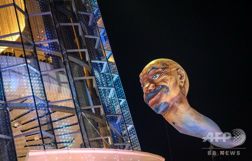 【12月23日 AFP】タイ・バンコクで開催されたクリスマスショーで、見物客の頭上に浮かぶ伝説のキャラクターを表したバルーン。
