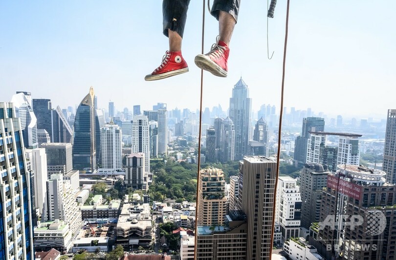ニュース ライフ 今日の1枚 【今日の1枚】足首ニョッキリ冷や汗ヒヤリ、超高所で作業 2019年12月21日 12:15 発信地:バンコク/タイ [ タイ アジア・オセアニア ] このニュースをシェア ‹ › ❮ 1/3 ❯ タイ・バンコクで、クリスマスと新年の照明を設置するために高層ビルを清掃する作業員(2019年12月10日撮影)。(c)Mladen ANTONOV / AFP 画像作成中 ! 【12月21日 AFP】タイ・バンコクで、クリスマスと新年の照明を設置するために高層ビルを清掃する作業員。(c)AFP ライフ 一覧へ> メディア・報道関係・法人の方向け 写真・動画 購入のお問合せ>