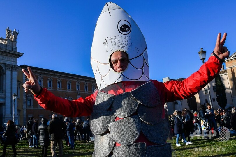 【12月15日 AFP】イタリアの首都ローマで14日、ゼノフォビア(外国人嫌悪)に抗議し政治改革を訴える若者主導の「イワシ運動(Sardine Movement)」のデモが行われ、数万人が参加した。