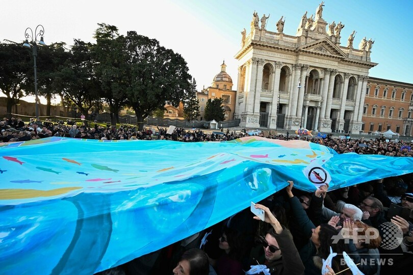 【12月15日 AFP】イタリアの首都ローマで14日、ゼノフォビア(外国人嫌悪)に抗議し政治改革を訴える若者主導の「イワシ運動(Sardine Movement)」のデモが行われ、数万人が参加した。