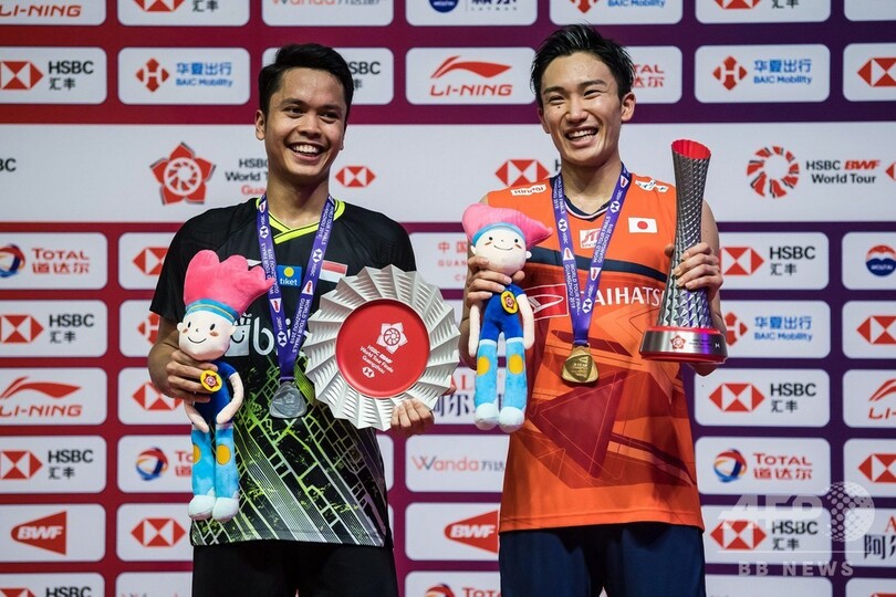【12月16日 AFP】バドミントン、BWFワールドツアーファイナルズ(BWF World Tour Finals 2019)は15日、中国・広州(Guangzhou)で男子シングルス決勝が行われ、世界ランキング1位の桃田賢斗(Kento Momota)は17-21、21-17、21-14の逆転でインドネシアのアンソニー・ギンチン(Anthony Sinisuka Ginting)に勝利し、史上最多となる年間11勝目を挙げた。