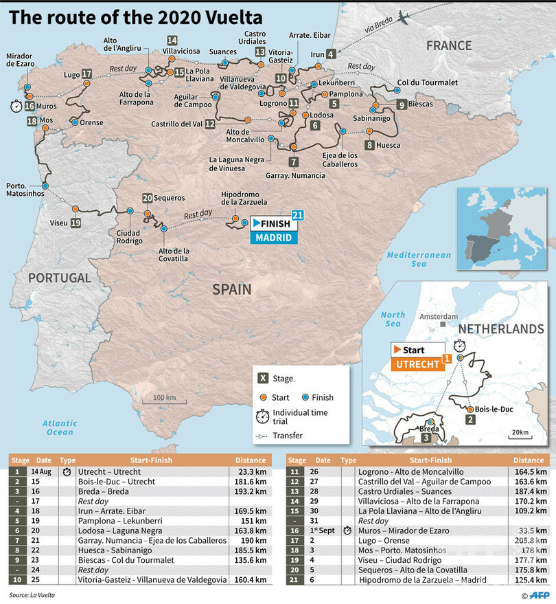 【12月18日 AFP】自転車ロードレース、ブエルタ・ア・エスパーニャ(Vuelta a Espana 2020)の2020年大会のコースが17日に発表され、オランダとフランス、ポルトガルを含むルートになった。