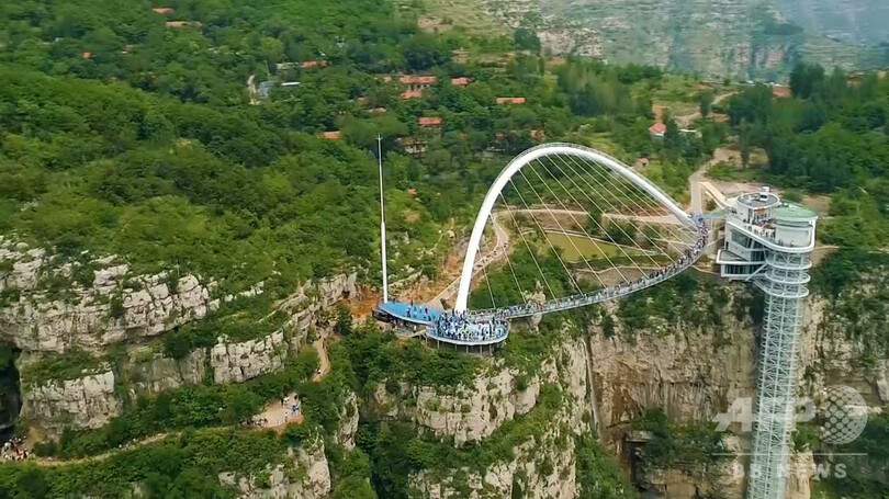 侯董事長によると、ガラス橋の完成後、景勝地の遊覧客は倍増し、周辺の食堂、民宿や農副産品の販売などに活気を与え、当地の観光業の発展を促進している。(c)CNS/JCM/AFPBB News
