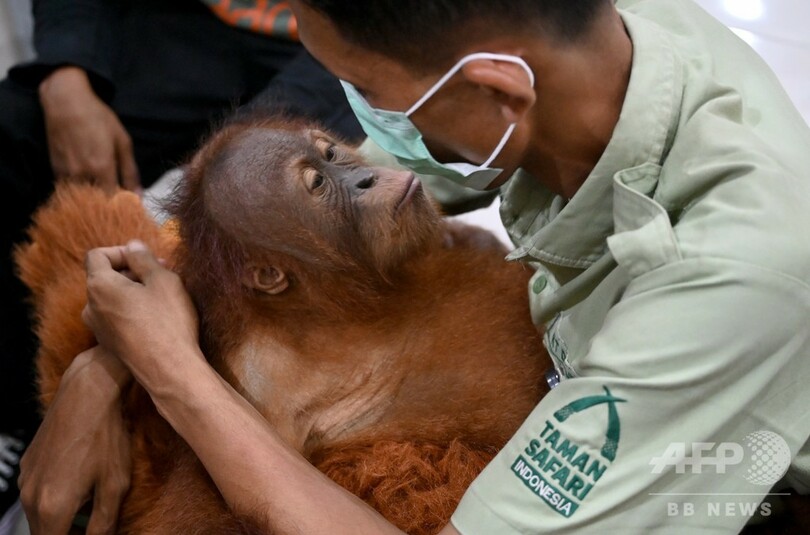 ロシア人の男が薬剤で眠らせて国外に密輸しようとしたオランウータンの子どもが、野生に返される見通しとなった。(c)AFP