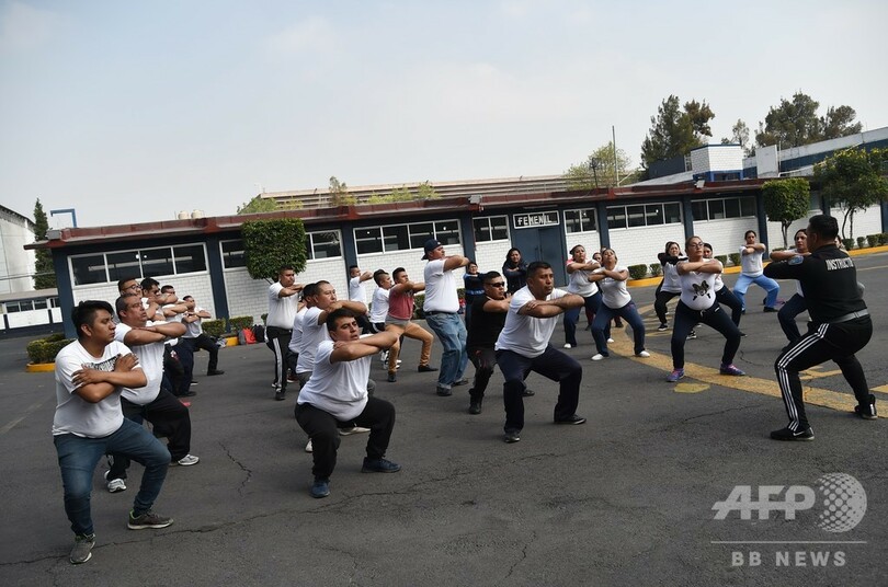 【12月26日 AFP】メキシコ・メキシコ市の警察施設でトレーニングを行う警察官ら。