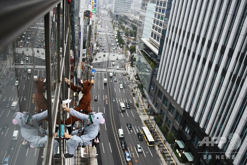 ニュース ライフ 「イノシシ」と「ネズミ」がビルの窓拭き、えとの引き継ぎ 東京 2019年12月20日 9:36 発信地:東京 [ 日本 アジア・オセアニア ] このニュースをシェア ‹ › ❮ 6/10 ❯ 東京でビルの窓掃除をするイノシシとネズミに扮した作業員(2019年12月19日撮影)。(c)CHARLY TRIBALLEAU / AFP 画像作成中 ! 【12月20日 AFP】年の瀬を迎えた東京で19日、今年の干支(えと)の「亥(イノシシ)」と来年の「子(ネズミ)」に扮(ふん)した作業員がビルの窓拭き掃除を行った。(c)AFP ライフ 一覧へ> メディア・報道関係・法人の方向け 写真・動画 購入のお問合せ>