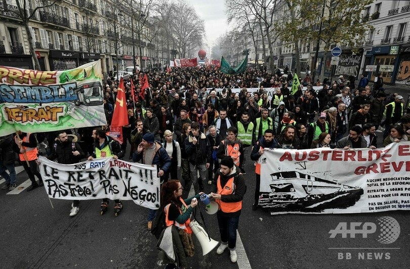 【12月20日 AFP】フランスでは19日、年金制度改革案に抗議する全国規模のストライキが3週目に突入した。公共交通機関の運休や間引き運転が続く中、通勤・通学客は疲れ切り、人々のクリスマス休暇の予定もめちゃくちゃになっている。だが、政府と労働組合側に合意の兆しはない。