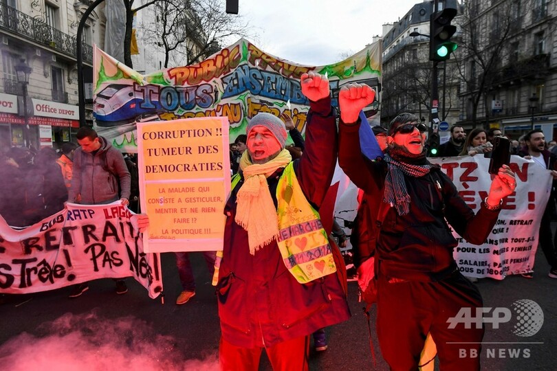 【12月20日 AFP】フランスでは19日、年金制度改革案に抗議する全国規模のストライキが3週目に突入した。公共交通機関の運休や間引き運転が続く中、通勤・通学客は疲れ切り、人々のクリスマス休暇の予定もめちゃくちゃになっている。だが、政府と労働組合側に合意の兆しはない。