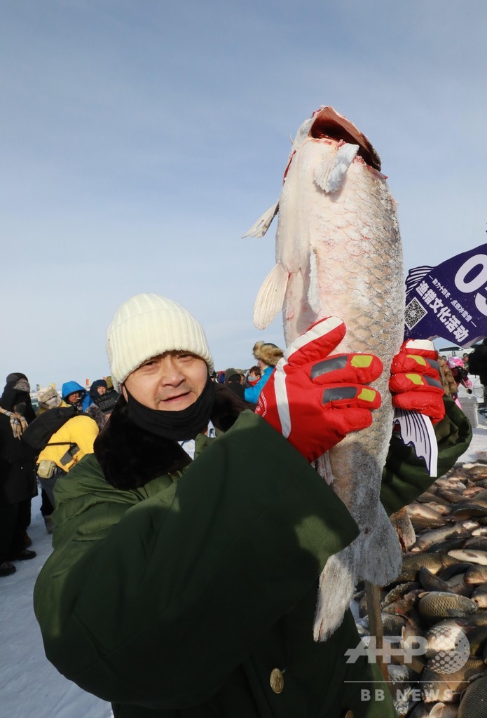 今年の「冬の漁」で投じた1回目の網には、約5トンの魚が入った。9キロの大きな赤いアムールコイは、その場で行われた競売の結果、北京から来た観光客に1万1888元(約18万5000円)で競り落とされた。