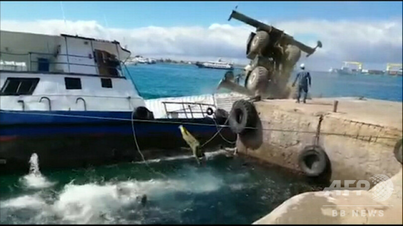 事故はガラパゴス諸島の東端にあるサンクリストバル(San Cristobal)島の港で、はしけにコンテナを積もうとしていたクレーン車が倒れたことにより発生。落下したコンテナでバランスを崩したはしけが沈没した。