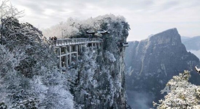 【12月24日 CNS】中国・湖南省(Hunan)張家界(Zhangjiajie)にある国家5A級景観区「天門山(Tianmenshan)国家森林公園」では、19日に初雪が降り、山頂が一面の銀世界に変わった。