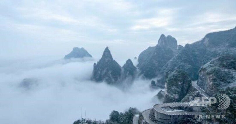 【12月24日 CNS】中国・湖南省(Hunan)張家界(Zhangjiajie)にある国家5A級景観区「天門山(Tianmenshan)国家森林公園」では、19日に初雪が降り、山頂が一面の銀世界に変わった。