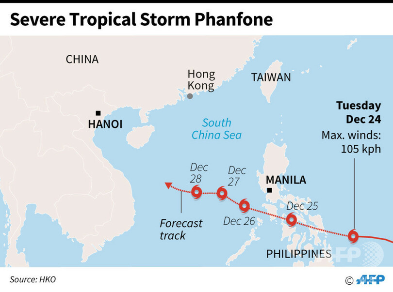 ファンフォンは25日に中部各島を抜け、南シナ海(South China Sea)に達する見通し。(c)AFP