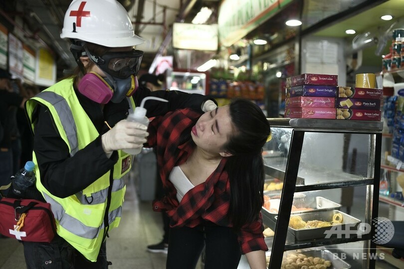 現場のAFP記者によると、高級品店が連なるショッピングセンター「ハーバーシティー(Harbour City、海港城)」では、私服警官隊がデモ隊に見つかって取り囲まれた際に、警察が催涙スプレーと警棒を使用した。