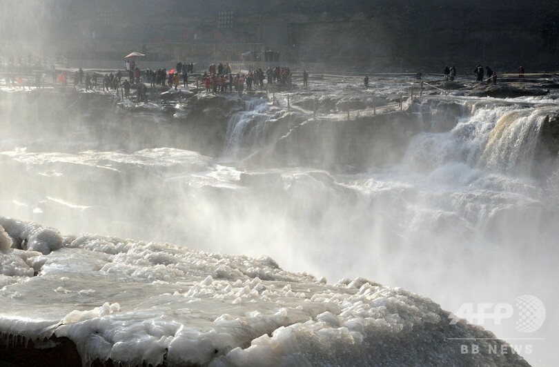 迫力満点! 凍り付いた黄河の壺口瀑布 中国・山西省