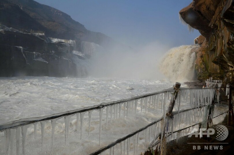 迫力満点! 凍り付いた黄河の壺口瀑布 中国・山西省