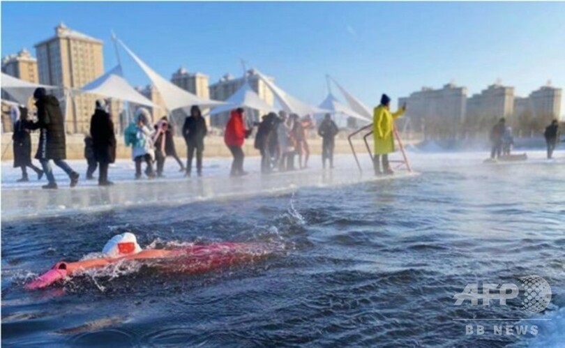 フルンボイル市ハイラル区(Hailar)の文化観光スポーツ局の孟迎利(Meng Yingli)副局長は「寒中水泳はフルンボイルで数十年も続いている。毎年冬になると地元の人々が自発的に川の氷を掘ってレーンを作っています」と説明。地元では、寒中水泳を冬季観光の目玉プロジェクトとしている。(c)CNS/JCM/AFPBB News