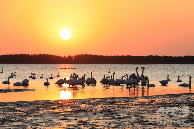 1万羽超が優雅に、冬のハクチョウの楽園 中国・山東省