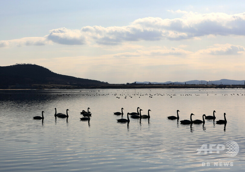 1万羽超が優雅に、冬のハクチョウの楽園 中国・山東省