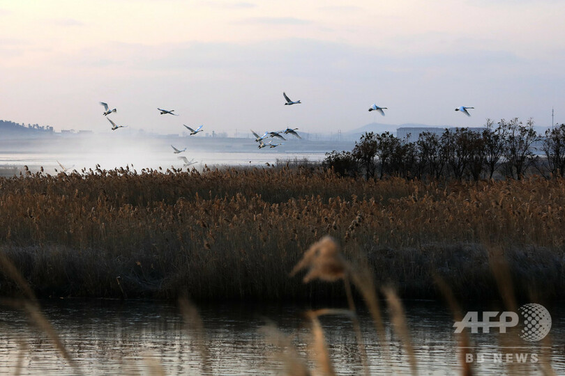 1万羽超が優雅に、冬のハクチョウの楽園 中国・山東省