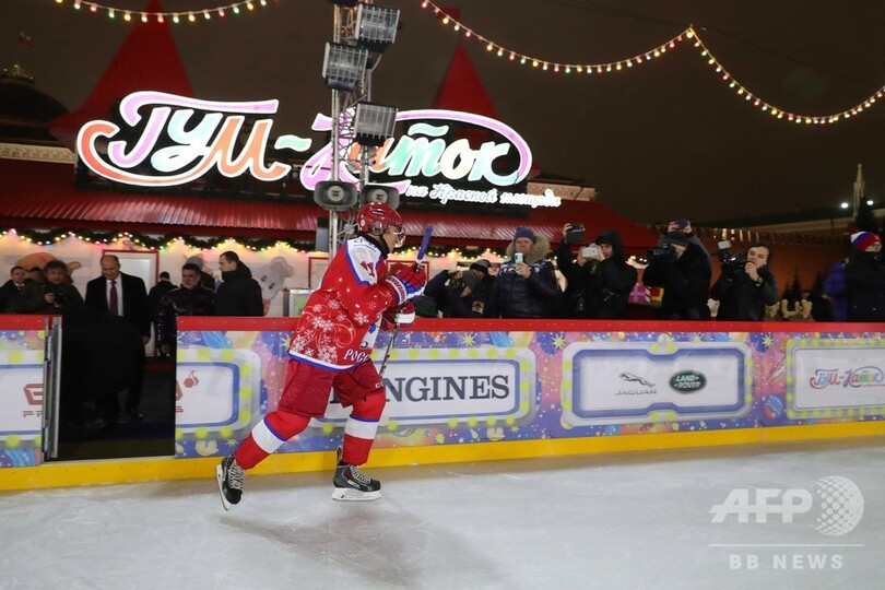 【12月26日 AFP】ロシアのウラジーミル・プーチン(Vladimir Putin)大統領が25日、モスクワの赤の広場(Red Square)にあるスケート場でナイトホッケーリーグ(Night Hockey League)のエキシビションマッチに出場した。(c)AFP