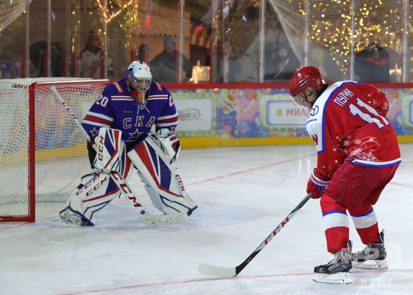 【12月26日 AFP】ロシアのウラジーミル・プーチン(Vladimir Putin)大統領が25日、モスクワの赤の広場(Red Square)にあるスケート場でナイトホッケーリーグ(Night Hockey League)のエキシビションマッチに出場した。(c)AFP