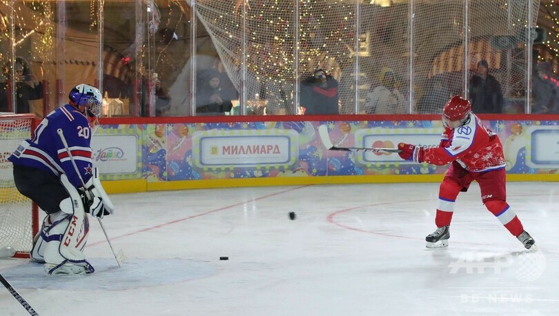 プーチン大統領がアイスホッケーの腕前を披露、赤の広場でエキシビションマッチに出場
