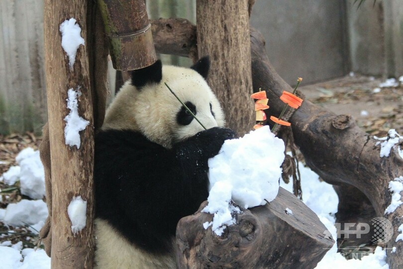 【12月27日 AFP】中国・四川(Sichuan)省にある成都ジャイアントパンダ繁殖研究基地(Chengdu Research Base of Giant Panda Breeding)で25日、飼育施設内に雪が敷き詰められ、パンダたちが楽しそうに遊んでいた。(c)AFP