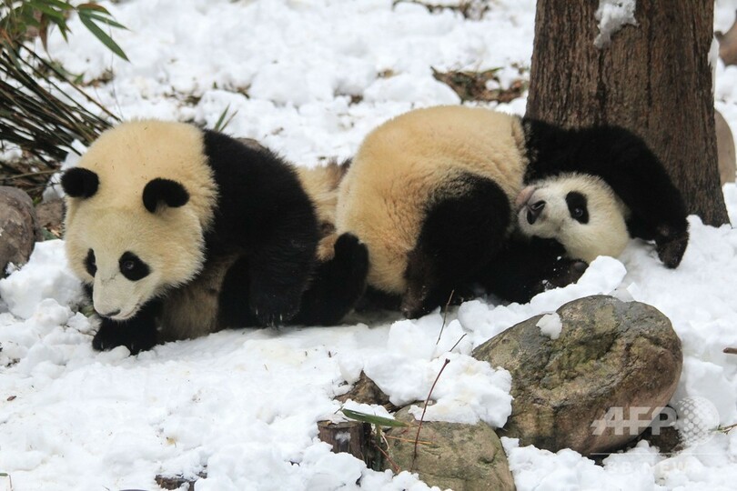 【12月27日 AFP】中国・四川(Sichuan)省にある成都ジャイアントパンダ繁殖研究基地(Chengdu Research Base of Giant Panda Breeding)で25日、飼育施設内に雪が敷き詰められ、パンダたちが楽しそうに遊んでいた。(c)AFP