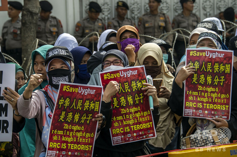 中国のウイグル政策に抗議 インドネシアで数百人がデモ