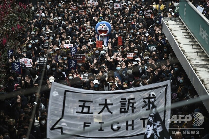 【1月1日 AFP】(更新)香港で元日の1日、大規模な民主派デモが行われ、多数の逮捕者が出たほか、警察と強硬派デモ隊の衝突もあった。