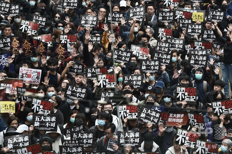 【1月1日 AFP】(更新)香港で元日の1日、大規模な民主派デモが行われ、多数の逮捕者が出たほか、警察と強硬派デモ隊の衝突もあった。