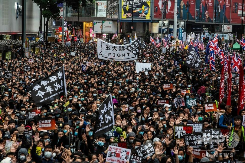 【1月1日 AFP】(更新)香港で元日の1日、大規模な民主派デモが行われ、多数の逮捕者が出たほか、警察と強硬派デモ隊の衝突もあった。