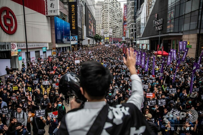 【1月1日 AFP】(更新)香港で元日の1日、大規模な民主派デモが行われ、多数の逮捕者が出たほか、警察と強硬派デモ隊の衝突もあった。