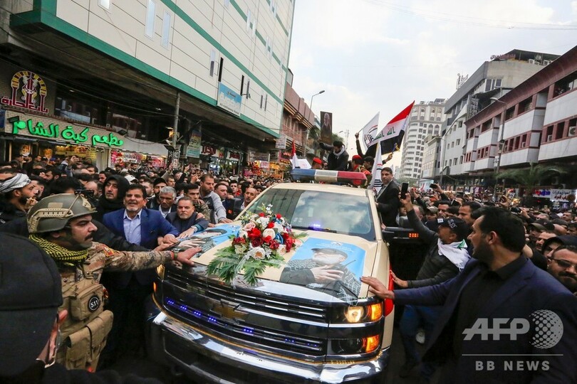 ソレイマニ司令官とムハンディス副司令官のひつぎは、まずバグダッドにあるシーア派の巡礼地カダミヤ(Kadhimiyah)に運ばれ、ここでは二人の死を悼む多くの人が「米国に死を」と叫んだ。