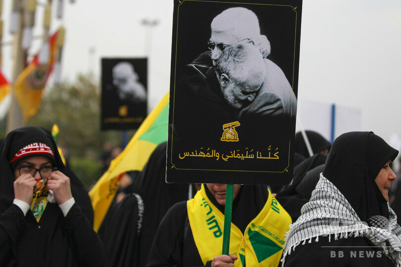 ソレイマニ司令官とムハンディス副司令官のひつぎは、まずバグダッドにあるシーア派の巡礼地カダミヤ(Kadhimiyah)に運ばれ、ここでは二人の死を悼む多くの人が「米国に死を」と叫んだ。