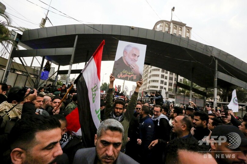 ソレイマニ司令官とムハンディス副司令官のひつぎは、まずバグダッドにあるシーア派の巡礼地カダミヤ(Kadhimiyah)に運ばれ、ここでは二人の死を悼む多くの人が「米国に死を」と叫んだ。