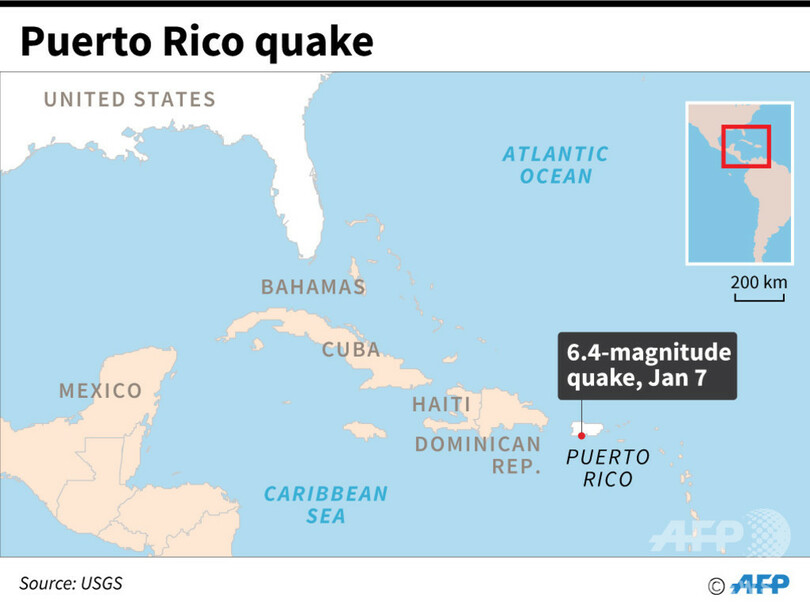 プエルトリコでは昨年12月28日から地震が頻発している。6日に起きたM5.8の地震では複数の建物が倒壊して停電や小規模な土砂崩れが起きていたが、死傷者は出ていなかった。(c)AFP