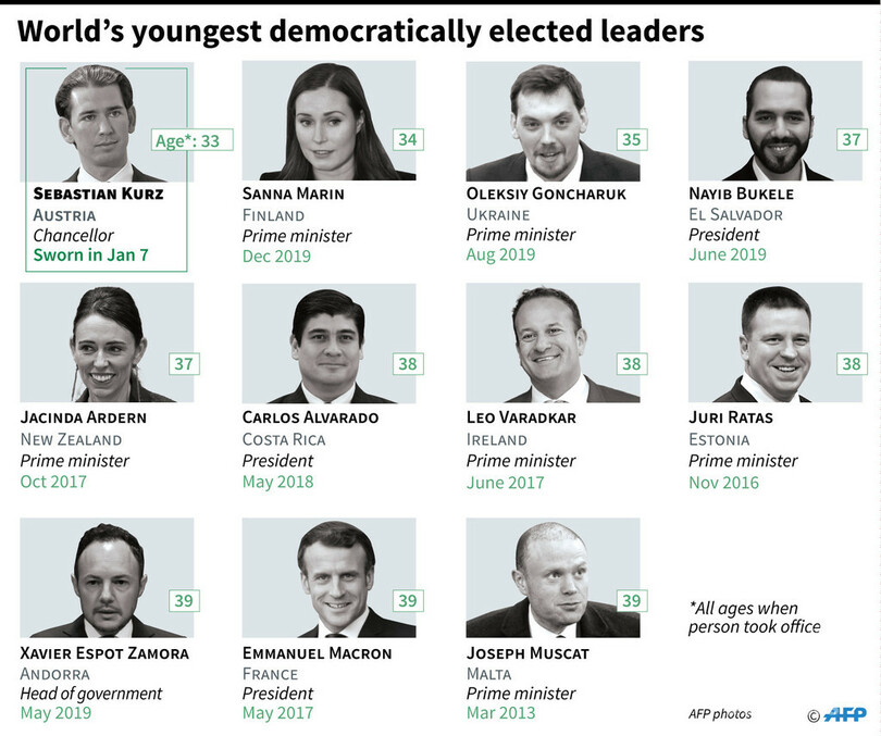 【1月8日 AFP】(図解追加)オーストリアの保守派を率いるセバスティアン・クルツ(Sebastian Kurz)氏(33)が7日、首相に宣誓就任した。民主的に選出された指導者としては世界最年少となる。クルツ氏は前政権で極右政党と連立を組み首相を務めたものの、連立は崩壊。今回は環境政党「緑の党(Greens)」との異色の連立政権を率いる。