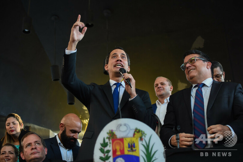 グアイド氏は国会議長を務めてきた野党指導者で、50か国以上からベネズエラの暫定大統領として認められている。グアイド氏と対立する左派のニコラス・マドゥロ(Nicolas Maduro)大統領は同国の深刻な経済危機の責任を問われ、暴君のように振る舞っていると批判されている。