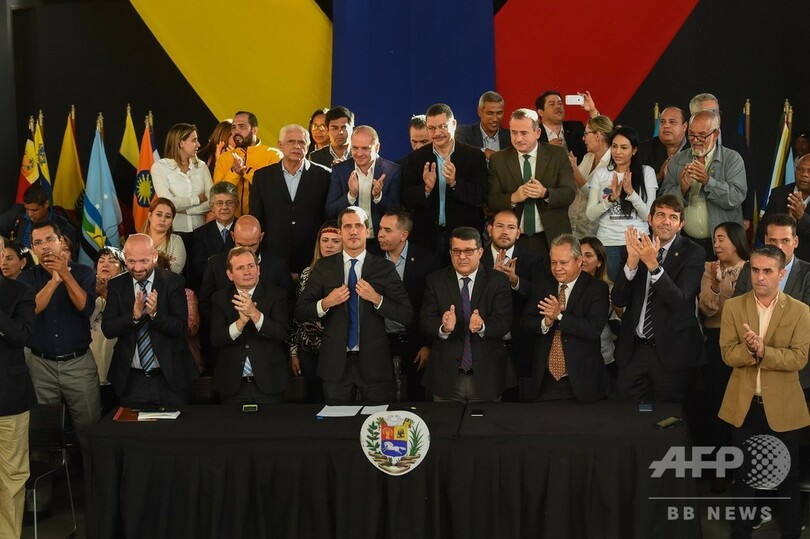 グアイド氏は国会議長を務めてきた野党指導者で、50か国以上からベネズエラの暫定大統領として認められている。グアイド氏と対立する左派のニコラス・マドゥロ(Nicolas Maduro)大統領は同国の深刻な経済危機の責任を問われ、暴君のように振る舞っていると批判されている。