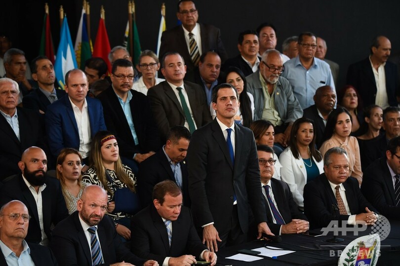 グアイド氏は国会議長を務めてきた野党指導者で、50か国以上からベネズエラの暫定大統領として認められている。グアイド氏と対立する左派のニコラス・マドゥロ(Nicolas Maduro)大統領は同国の深刻な経済危機の責任を問われ、暴君のように振る舞っていると批判されている。