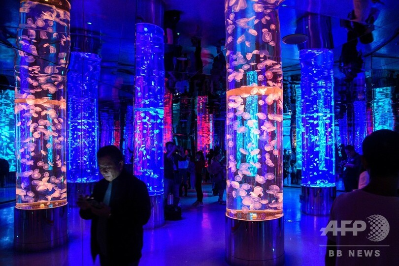 この他、熱帯雨林の景観をつくり出し、入場者は中華チョウザメの水底トンネルで1億4000万年の生命の奇跡を感じることができる。大評判のクラゲ観賞区では6億5000万年の生命の営みを観察でき、7D映画館では7分間のメコン川飛行体験を楽しむことができる。(c)CNS/JCM/AFPBB News