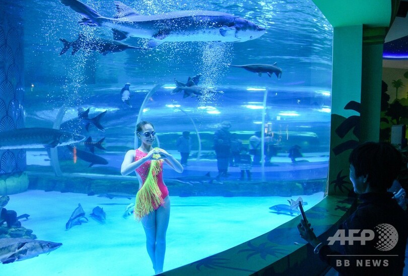 この他、熱帯雨林の景観をつくり出し、入場者は中華チョウザメの水底トンネルで1億4000万年の生命の奇跡を感じることができる。大評判のクラゲ観賞区では6億5000万年の生命の営みを観察でき、7D映画館では7分間のメコン川飛行体験を楽しむことができる。(c)CNS/JCM/AFPBB News