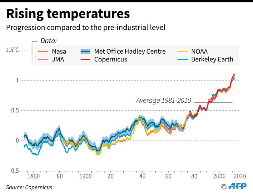 【1月9日 AFP】欧州連合(EU)のコペルニクス気候変動サービス(C3S)は、2019年が観測史上2番目に暑い年で、2010~19年も観測史上最も暑い10年間だったと発表した。