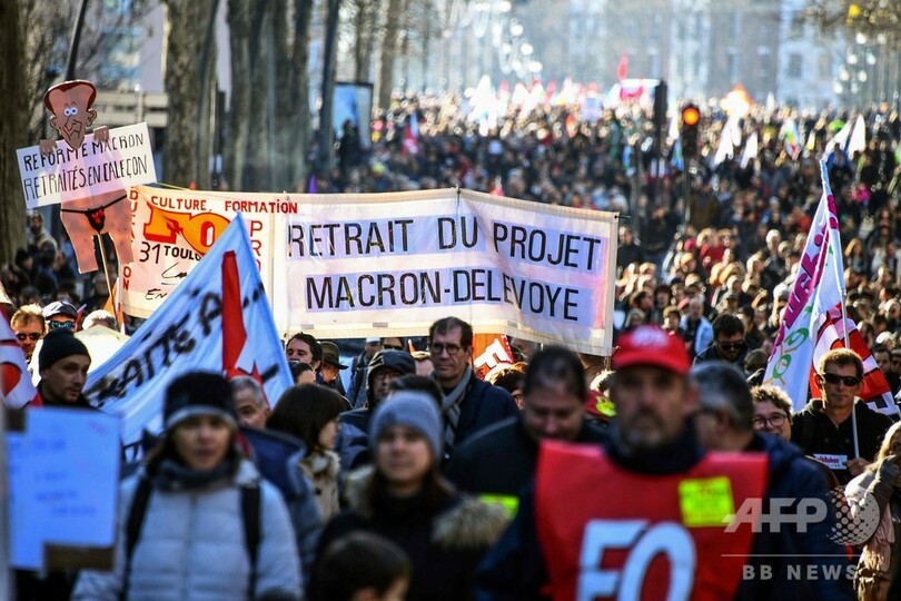 【1月13日 AFP】年金制度改革に対する抗議デモが続くフランスで12日、最も強く反発を受けている方策を取り下げると政府が提案したにもかかわらず、交通機関のストは39日目を迎えた。