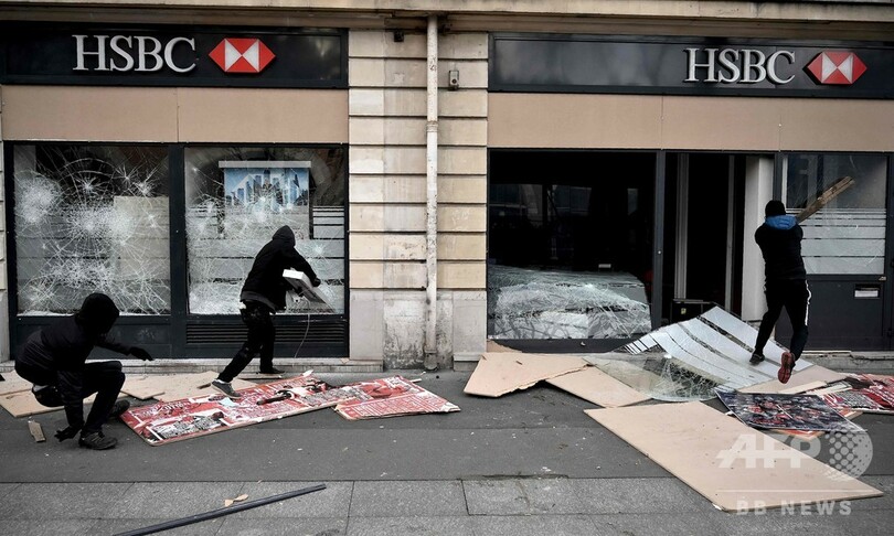 11日にパリで行われたデモでは、マスクやフードを身に着けた参加者も見られ、デモ行進の通り沿いにある店舗の窓を割ったり、放火したり、警察の機動隊にものを投げたりした。これに対し警察は催涙ガスを使用した。デモは、マルセイユ(Marseille)やトゥールーズ(Toulouse)、リヨン(Lyon)、ナント(Nantes)などでも行われた。